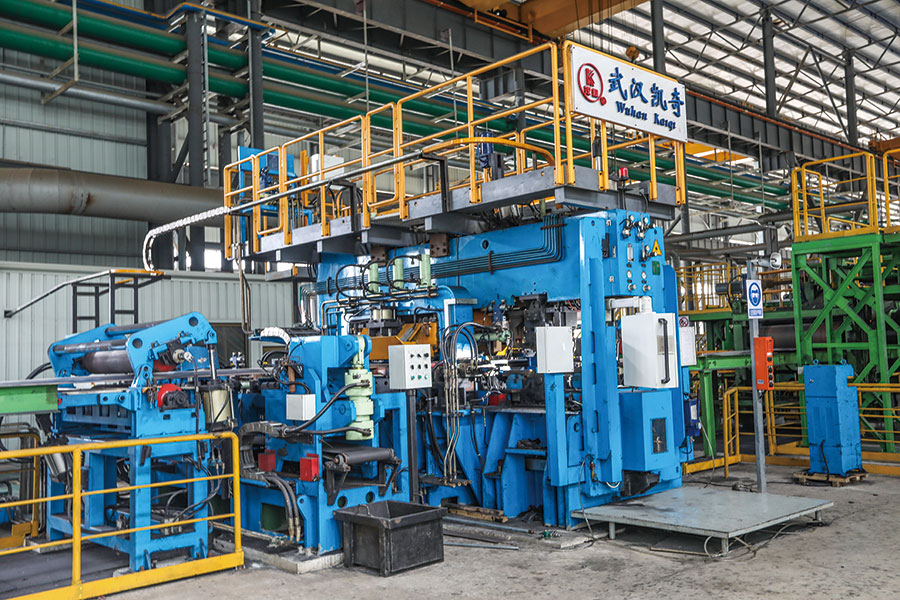We have introduced a set of 1420 pickling line-tandem cold rolling mill (PL-TCM), which is jointly designed and manufactured by CFHI and WISDR. Electrical part is Shanghai BAOSIGHT’s automatic control system and unit equipment is configured reasonably. The equipment is able to reach domestic first-rate level. Machinery equipment is composed of laser welding equipment, spraying turbulence-flow pickling equipment, high-precision dual-tower cutting equipment (SMS), five-rack channeling roll UCM tandem mill and new-type rotary dual-coiling block coiling machine. Electrical part of rolling mill is designed with second flow control system and key electrical equipment includes laser velocimeter (BETA), thickness gauge (IMS), tension meter (ABB) and shape meter (ABB), all of which can control sheet thickness and shape automatically; rolling speed can reach 1,500 m/min and designed annual output of unit is 1.2 million t. With thickness within 0.2—2.0 mm, the finished product is mainly oriented to household appliance, food, building and auto markets.