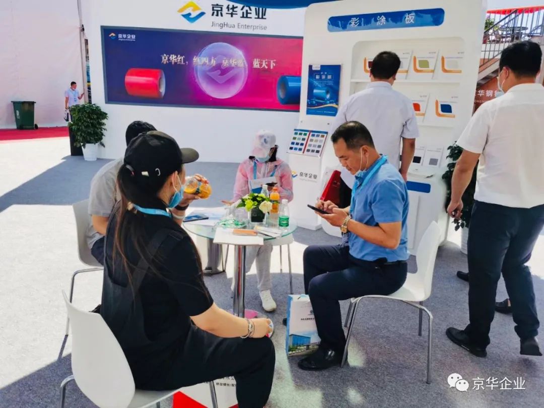 其中,產(chǎn)品展示區(qū)—京華企業(yè)旗下產(chǎn)品的京華彩涂板、京華精品彩涂板、京華高端彩涂板、熱鍍鋅板、高強(qiáng)鋼板等板材,憑借自身輕質(zhì)、美觀、防腐、抗菌、環(huán)保等優(yōu)質(zhì)屬性吸引了眾多參展者的駐足觀看和青睞。企業(yè)旗下的5大板材可廣泛應(yīng)用于基礎(chǔ)設(shè)施建設(shè)、交通工程、商業(yè)地產(chǎn)、工業(yè)建筑等領(lǐng)域,為大美雄安的建設(shè)保駕護(hù)航。